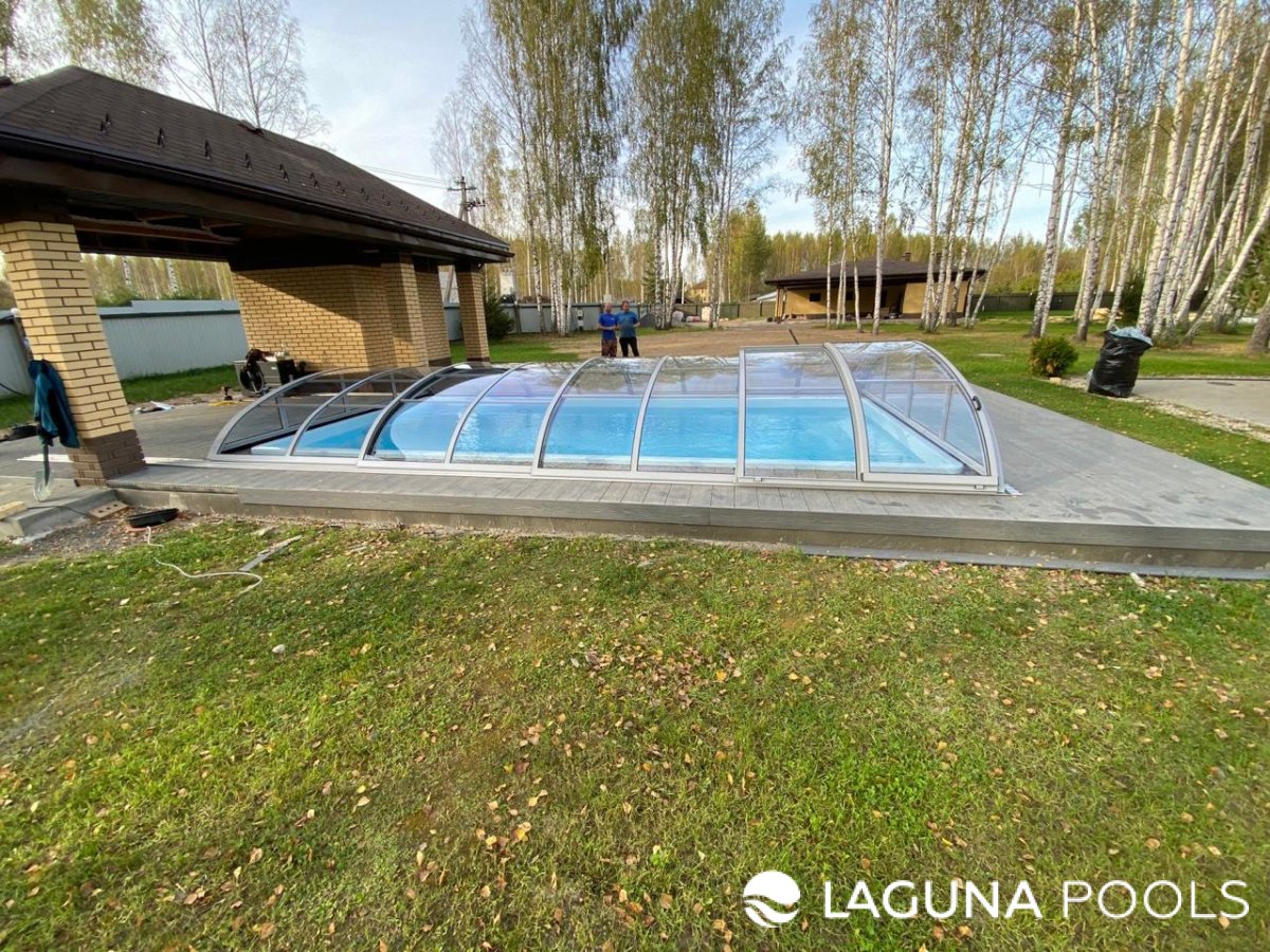 Композитный бассейн с раздвижным павильоном из поликарбоната